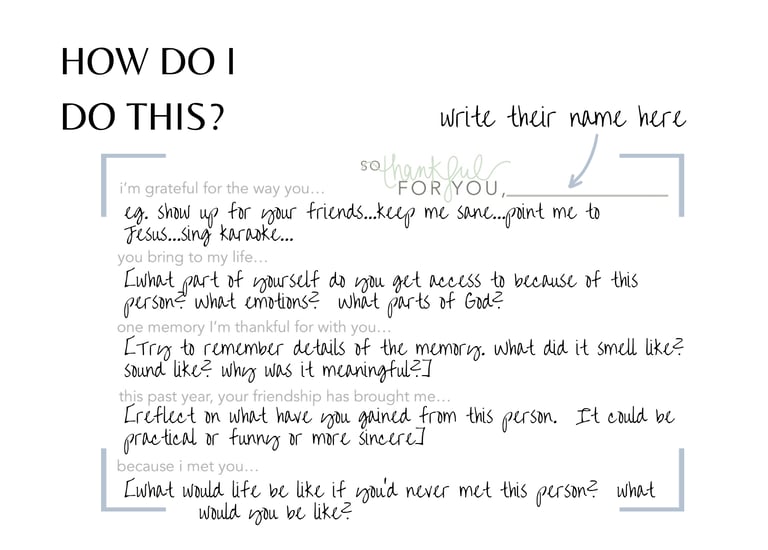 I use them to think deeply about why I'm thankful for my people, I write why I’m grateful to each of them, and then they get to receive that gratitude when I share them.